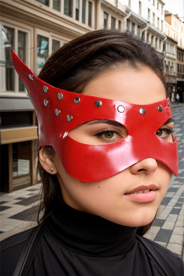 Made from a substantial 1.0mm natural latex, this eye mask has a solid, high-quality feel and a high-gloss finish. The vibrant red color and shiny surface beautifully complement the sleek design, creating a powerful and unforgettable impression.